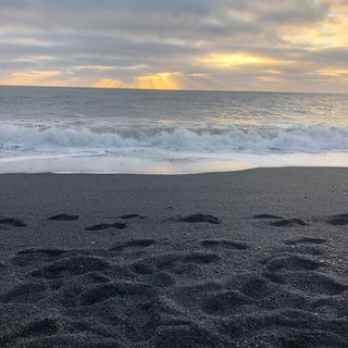 Our next stop on the trip was the Solheimajokull Glacier. I had never seen an actual glacier before so this took my breath away. We hiked for around 10 minutes to get to the glacier. We got to go down on the sand to see the glacier more up close. Some of the glaciers had even broken off and drifted from the main one. There was an array of colors in the glaciers. We saw white, blue, and then the sandy black on them.