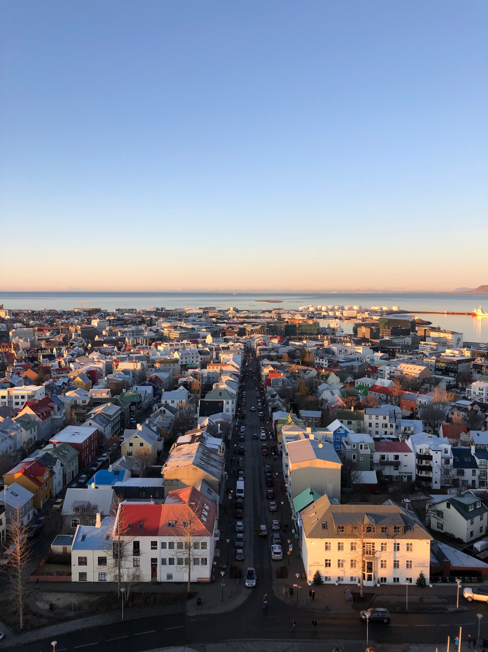 We walked to the Hallgrimskirkja Church. We paid $12 to go to the top of the church to see the amazing views of Iceland. This did not disappoint. We went up a little before sunset and we got to see the whole city clear and picturesque.